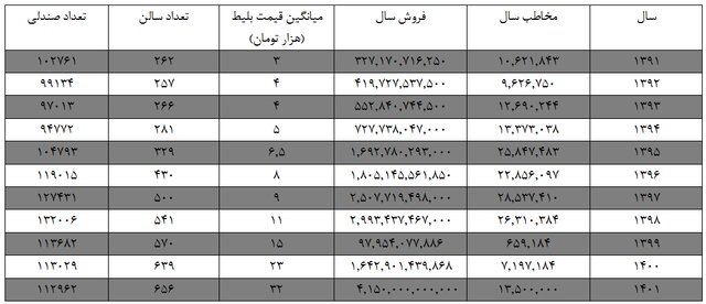 او با تاکید بر اینکه جدول آماری از این وضعیت به اندازه کافی گویا است، بیان میکند که میزان مخاطب در سال ۱۴۰۱ بازگشت به سال ۱۳۹۴ است.